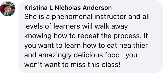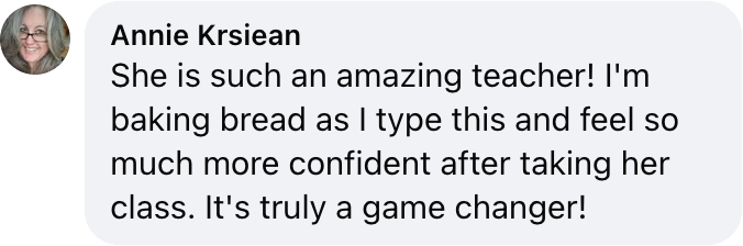 Whether you’re a seasoned baker, an evolving homemaker, or just looking to create something delicious, I strive to help everybody learn something new while having a fun experience in all of my in-person classes.
